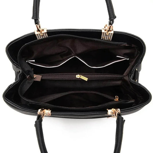 Stylish PU Leather Handbag for Women with Shoulder Strap Black